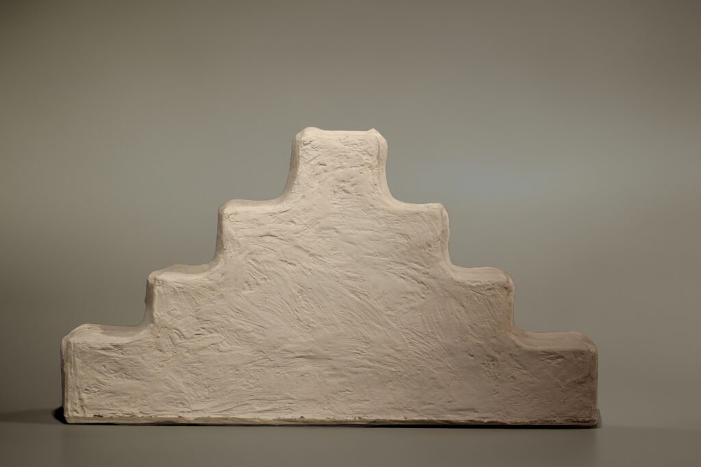 Hussain Muhay reinterprets the Sawm’ah as an independent visual form, creating contemporary sculptures inspired by its original structure. He modernizes it by incorporating contemporary construction materials, emphasizing its adaptability as a visual element that transcends its original function. By isolating it from its traditional architectural setting and placing it in a new artistic context, he shifts the discussion from its historical utility and purpose to its purely visual and aesthetic qualities. Through this project, Hussain Muhay establishes a new dialogue between art as an aesthetic expression and heritage as a cultural reference. He challenges the conventional perception of traditional architectural elements, presenting them as abstract forms that transcend their practical function. His work reimagines heritage through a contemporary visual lens, showcasing the potential of historical symbols to be reinvented and integrated into modern artistic discourse.