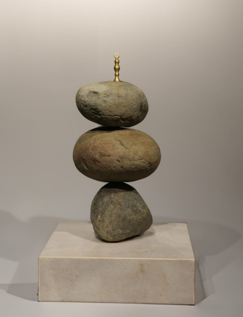 In his artwork, "Dome of the Rock," Hussain Muhay draws inspiration from nature, which serves as the ultimate model of balance. He uses this natural equilibrium to represent the three Abrahamic religions, which have historically experienced tensions and conflicts since their emergence. His artwork proposes a vision for coexistence by stacking rocks on top of each other in a balanced formation, symbolizing the possibility of stability between these religions. Scientifically, this balance is achievable if each rock is carefully placed at the right contact point to create a stable and firm structure. However, the function of the Sawm’ah remains a topic of debate. Some sources suggest that it symbolized wealth and social status, while others link it to offering altars that were common in neighboring regions and held religious or spiritual significance in pre-Islamic Arabian traditions.