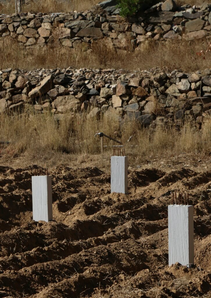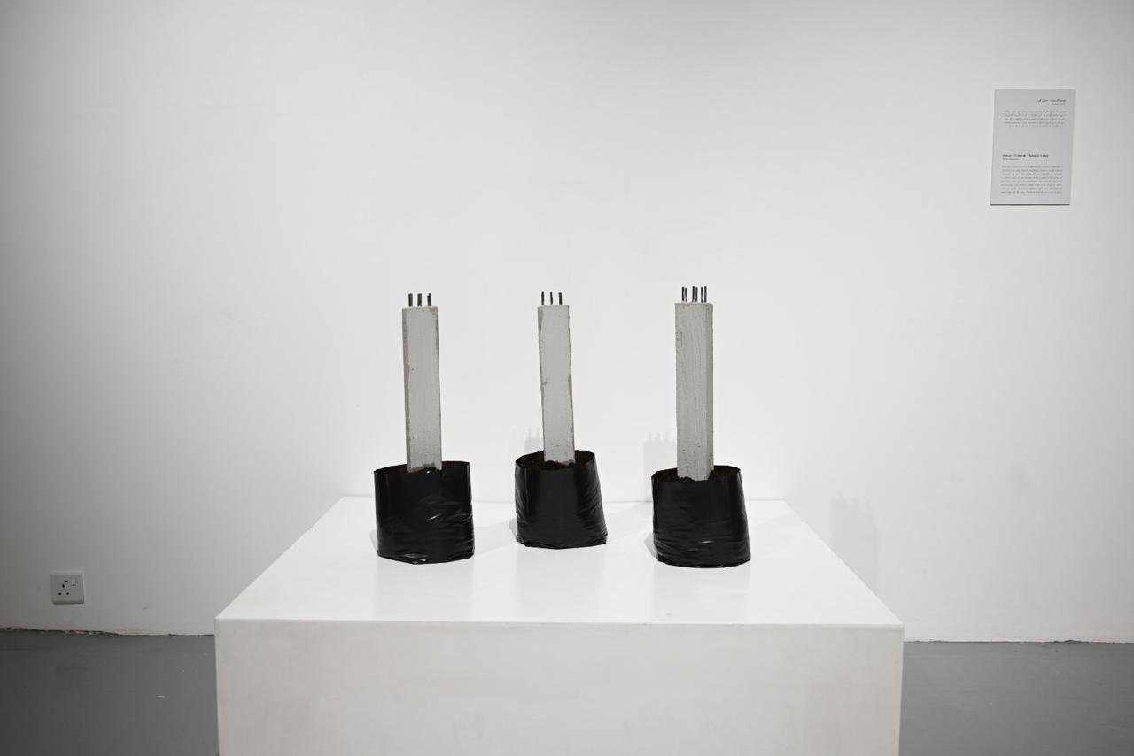 في بيان بصري مترابط، يقدم حسين محي أعمدة إسمنتية مصغرة على شكل شتلات زراعية جاهزة للغرس في التربة. يجسد هذا المفهوم استعارة صارخة لانتشار الهياكل الخرسانية، حيث أصبح الأسمنت منتشرًا لدرجة أنه يُعامل كسلعة قابلة للتداول—جاهزة للنقل والبيع والاستخدام في أي مكان. المفارقة تكمن في أن هذه "الشتلات الإسمنتية" تحل مكان شتلات الأشجار المثمرة التي اعتاد الفلاحون غرسها في الماضي، مما يعكس التحول المأساوي من الزراعة والخصوبة إلى الخرسانة والجفاف.